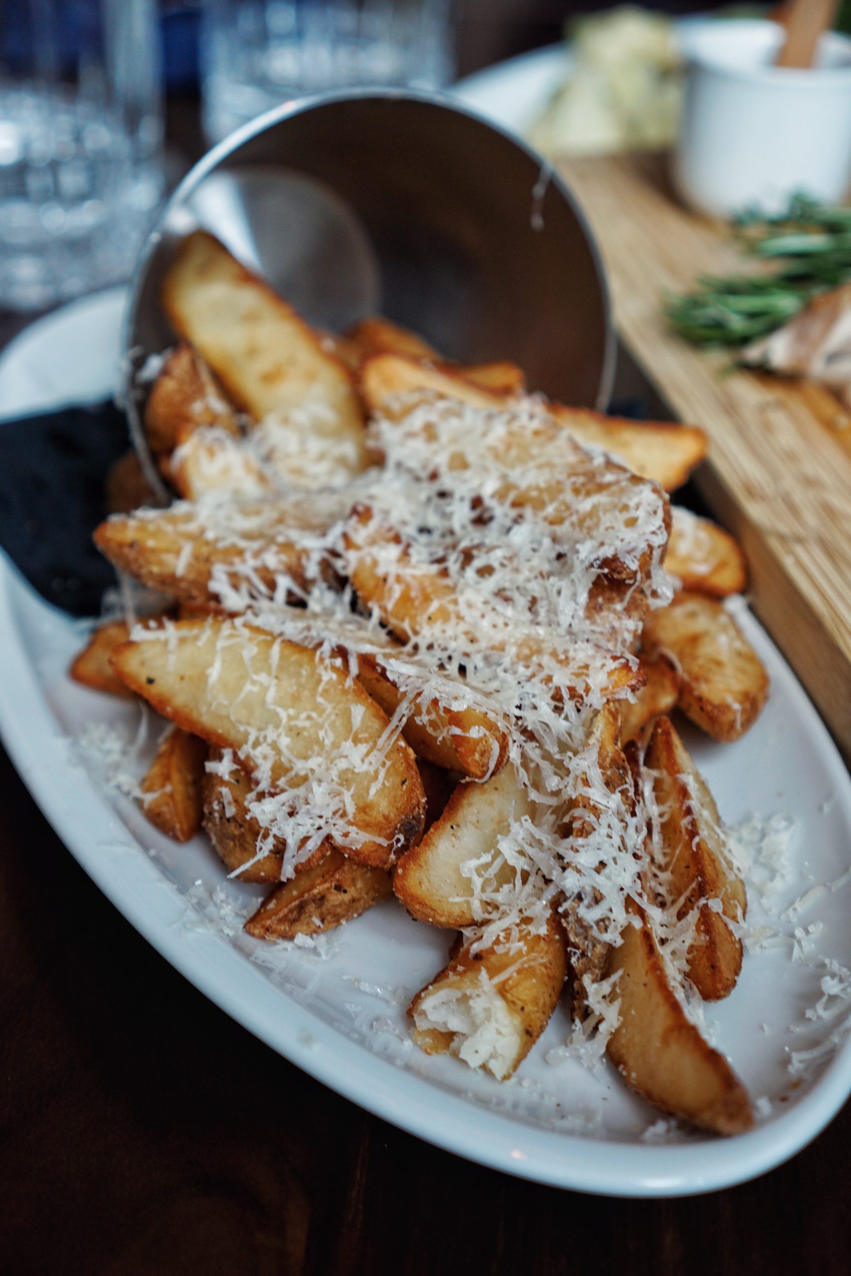 The fish of the day was Sea Bream. It was grilled and then served tableside. The fish was flaky and moist – but a touch on the dry side. The skin was grilled to a delicious crisp with a lovely char from the grill. A squeeze of the grilled lemon really elevated the dish.