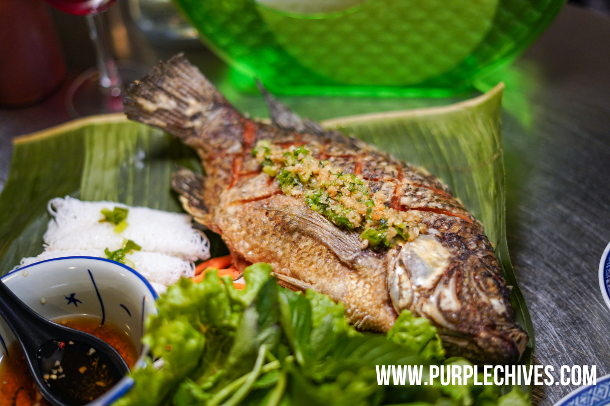 - Whole Tilapia DIY Salad Roll Platter ($43.00) – whole fried tilapia, lettuce, herbs, banh hoi rice sheets, rice paper, ginger fish sauce dip